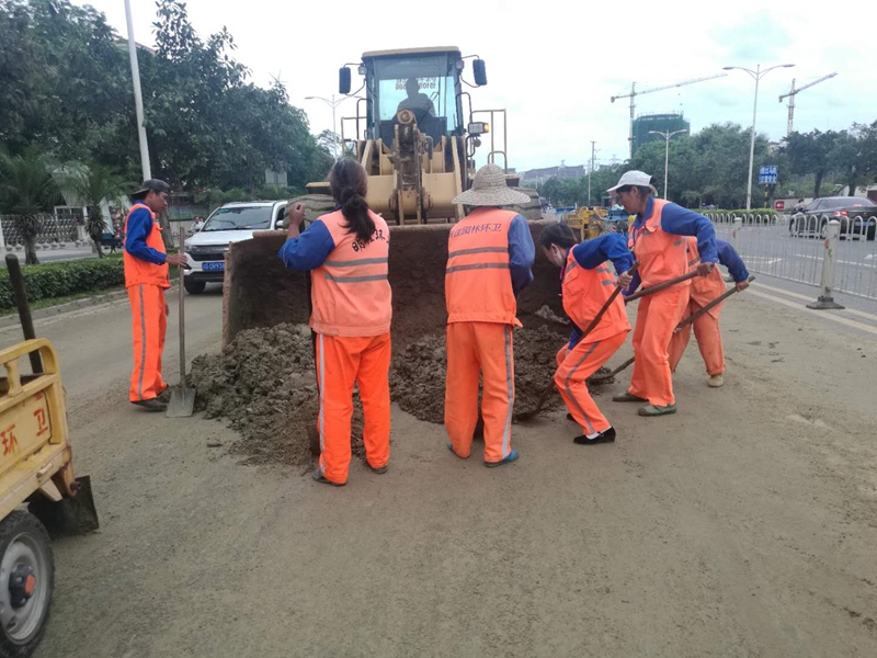 7月23日上午,集團(tuán)公司組織人員,并派出鏟車(chē)、清地車(chē)、高壓沖洗車(chē)等加強(qiáng)作業(yè),對(duì)臺(tái)風(fēng)過(guò)后的主次干道堆積泥沙進(jìn)行大沖洗,對(duì)散落垃圾、斷裂樹(shù)枝樹(shù)葉進(jìn)行全面普掃清運(yùn),對(duì)倒伏樹(shù)木及時(shí)扶正,加強(qiáng)垃圾清運(yùn),確保道路暢通整潔。截止發(fā)稿,集團(tuán)公司共出動(dòng)機(jī)械化清掃車(chē)輛28車(chē)次,各類垃圾壓縮車(chē)輛271車(chē)次,清運(yùn)垃圾851噸。