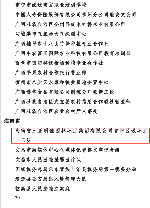 “芬芳三月,如歌巾幗?!痹趹c祝第111個(gè)三八國際勞動?jì)D女節(jié)之際,三亞明佳園林環(huán)衛(wèi)集團(tuán)有限公司吉陽區(qū)域環(huán)衛(wèi)三隊(duì)榮獲2020年度“全國巾幗文明崗”榮譽(yù)稱號。“全國巾幗文明崗”是全國婦女“巾幗建功”活動專設(shè)崗, 是全國婦聯(lián)為表彰積極為國家、為社會、為人民做出突出貢獻(xiàn),取得優(yōu)異的優(yōu)秀婦女團(tuán)體而頒發(fā)的榮譽(yù)稱號。