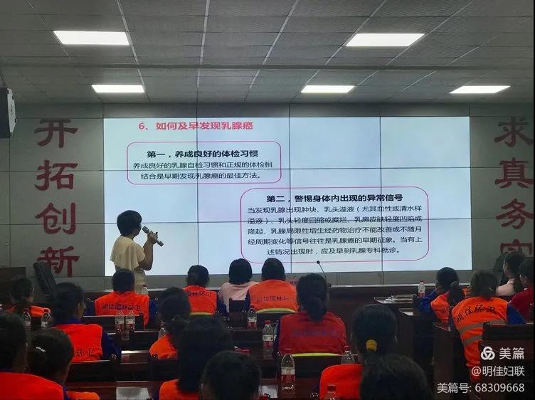 接著,由三亞市衛(wèi)生健康服務(wù)中心羅英媚醫(yī)師講解女性健康知識(shí)。課上羅醫(yī)師分別介紹了女性生理知識(shí),如何科學(xué)預(yù)防、及早發(fā)現(xiàn)乳腺癌及宮頸癌,號(hào)召大家定期做醫(yī)學(xué)檢查,并隨時(shí)自我檢查,做好疾病預(yù)防。